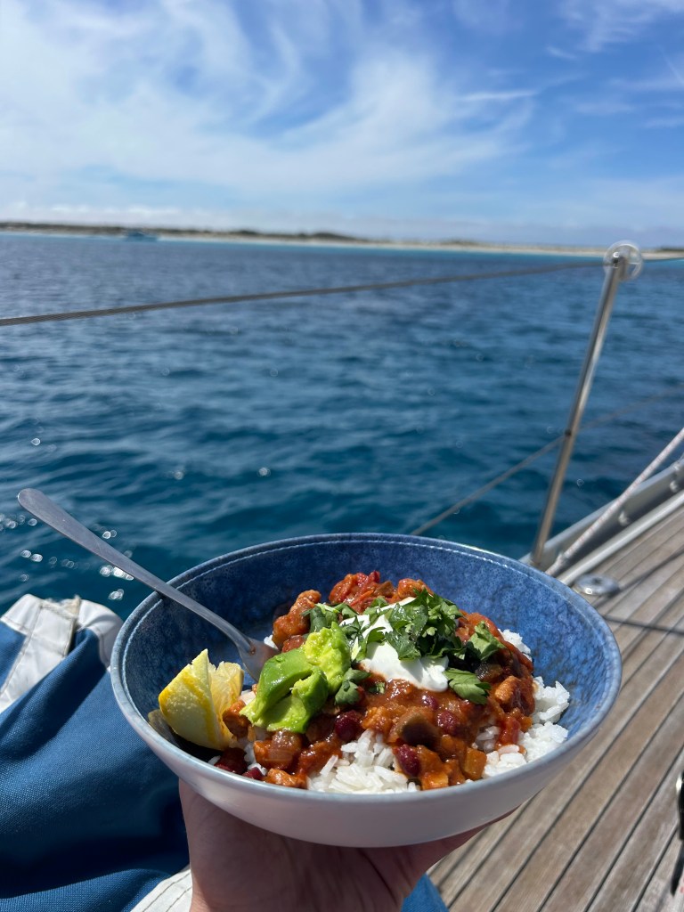 Unohtamatta hyvää ruokaa. Purjehduksilla syödään aina hyvin ja Välimerelliseen tapaan.